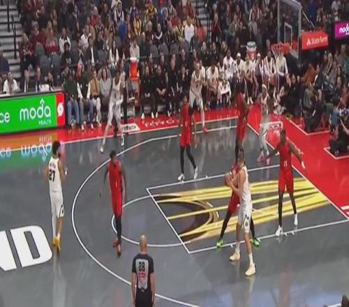 而到了第二节,杨瀚森还是没登场,此时获得轮换机会的内线是杜普·里斯,此人上一场面对爵士投进3个三分球,证明了自己适配开拓者的小球打法。
