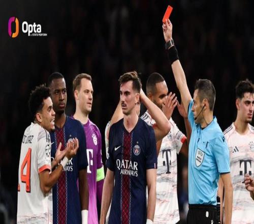 欧冠联赛阶段第四轮,拜仁慕尼黑客场对阵巴黎圣日耳曼,上半场路易斯-迪亚斯上演梅开二度,随后被红牌罚下,据统计,路易斯-迪亚斯成为欧冠联赛第二位梅开二度后染红的球员。